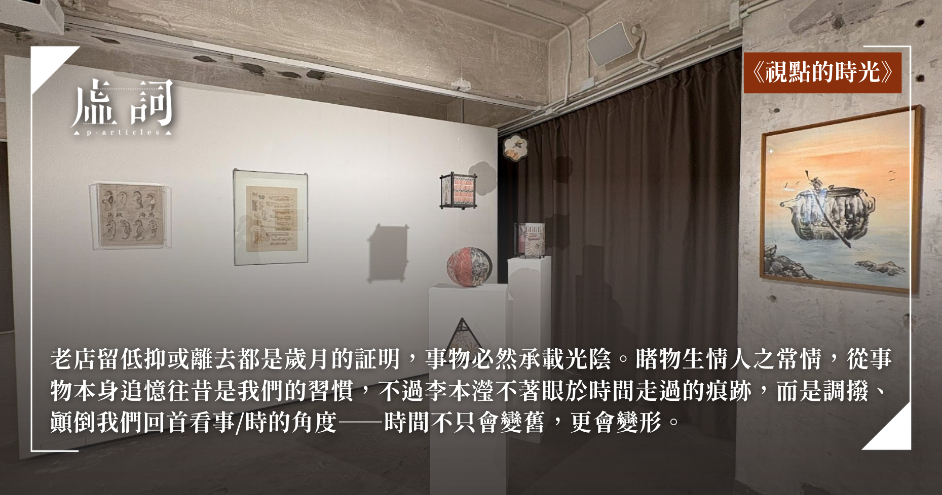 「時間」是很大的命題,也是連繫萬物的無形存在。李本瀅和姚冬穎在HART HAUS的雙人展《視點的時光》(Time in Perspective),圍繞屹立西區逾半世紀的傳統店舖。題目下得準確,講「時光」而非「時間」(儘管英文都是Time),前者感性文藝,後者客觀,「時光」一詞既對應老店懷舊之情,「光」字也扣連怎樣「看」時間的所謂視點,畢竟視覺源自光線,要有光才能看見。