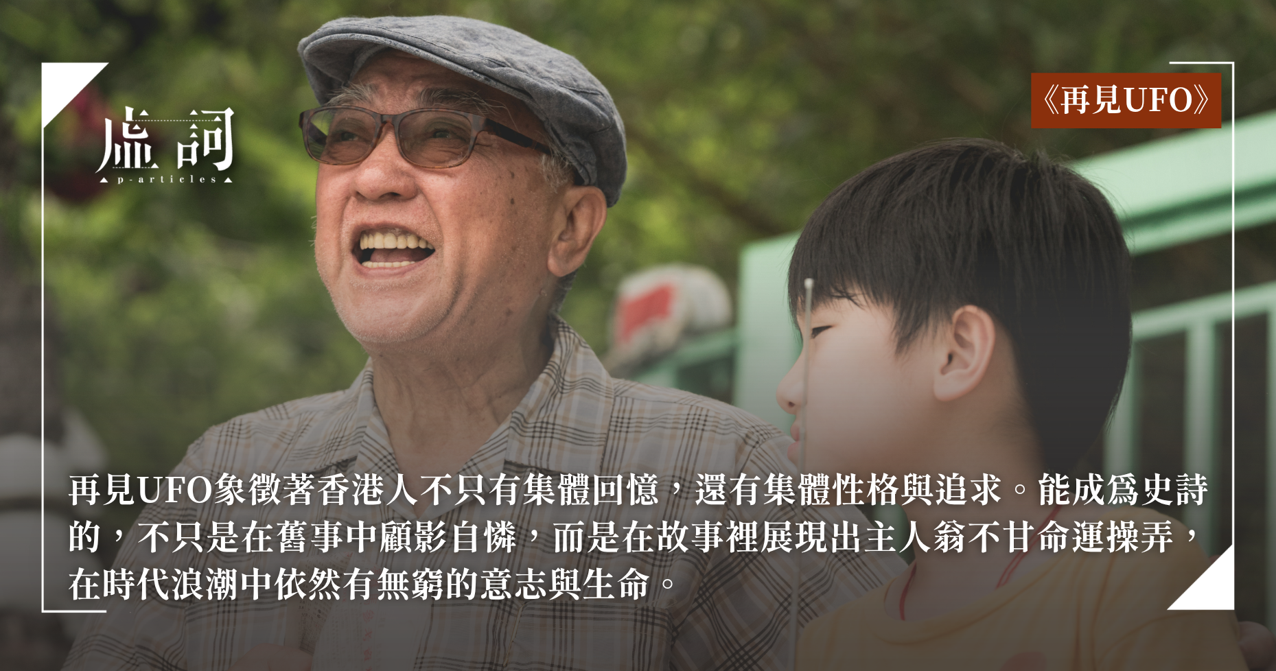 16. 常被引用的阿巴斯,提到香港存在「消失的政治」,是源自九七大限的焦慮,在變遷的城市中,我們不斷發掘也許從未出現,卻終將消逝的那個舊香港。因此,有人說《再見 UFO》像《歲月神偷》賣懷舊,對這種 cliche 提不起勁入場,是可以理解的。亦有人說這是心靈雞湯,再見 UFO 之後,再見童年的自己,難道他們的人生問題都得到解決嗎?當然不是。