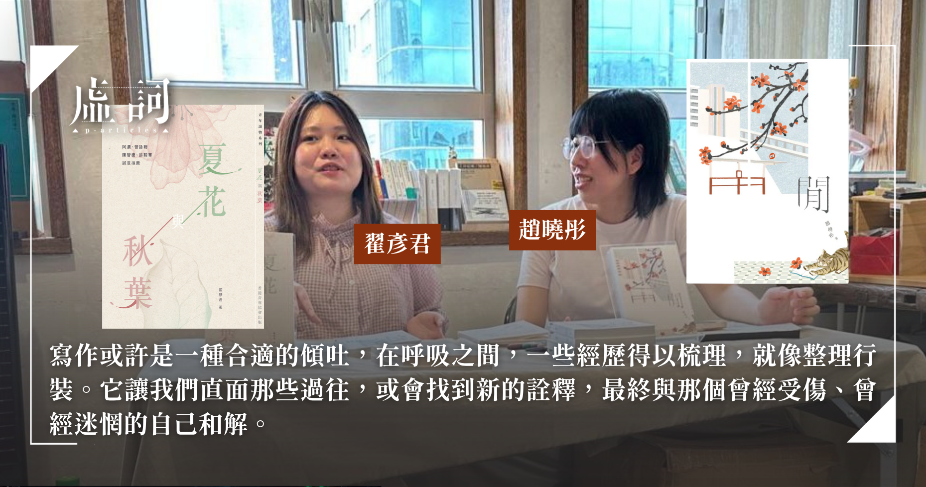 散文源於自身,寫作時不得不挖掘那些私密的記憶。這種對過往的凝視,可能粗暴,也可以很溫柔。最近我參加了多場新書分享會,內容包括經歷自述、教學分享、文本細讀、詩觀爭辯,林林總總。但這場分享會中,兩位作者卻以近乎剖白的語調,談及成長的痛點,最終引導聽眾回歸各自「曾經」的分享。翟彥君與趙曉彤在界限書店對談她們的新書《夏花與秋葉》和《閒》,並以「我曾經……」為引,跳脫傳統新書分享會的單向講述,與聽眾談及成長的傷痕。分享會上,她們沒有對文本作過多詮釋,更多談及的是創傷、和解與寫作的意義。兩人從各自的寫作起點談起,一路回溯校園經歷、自我認知的迷惘,最終闡述寫作如何從一種自我掙扎,昇華為連結他人的橋樑。