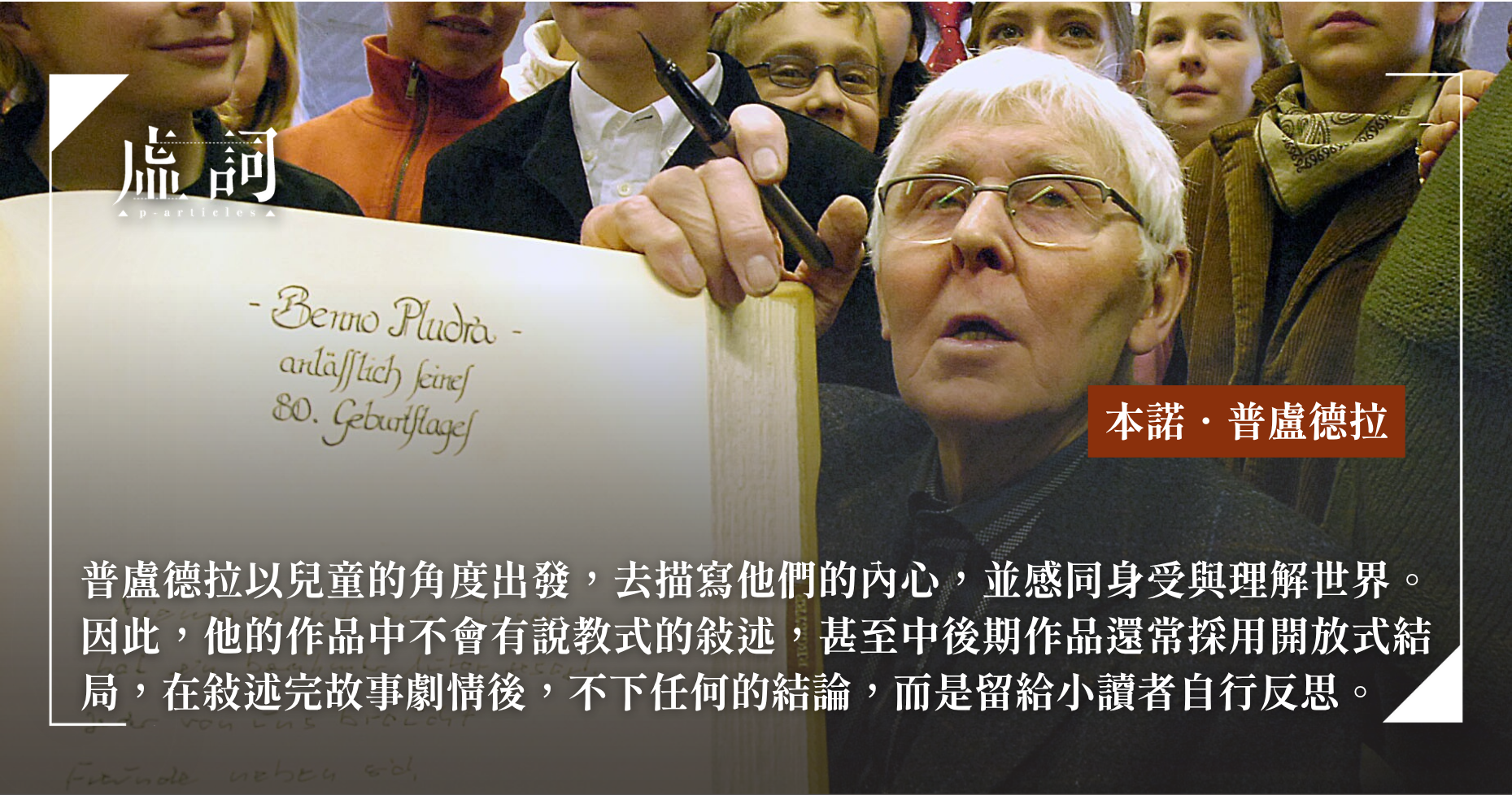 提到德國的兒童文學作家,不少人會立刻想到耶里希.凱斯特納(Erich Kästner)。凱斯特納確實有很高的文學成就,不僅在1960年獲頒國際安徒生大獎,其代表作如《小偵探愛彌兒》與《天生一對》對許多德國民眾而言都是耳熟能詳的作品。他憑藉著小說《法比安》(Fabian)與《越過狗群》(Der Gang vor die Hunde),甚至在給成人閱讀的嚴肅文學中也佔有一席之地。然而,對出生東德的民眾而言,另一個名字或許更加親切與熟悉——本諾.普盧德拉(Benno Pludra)。