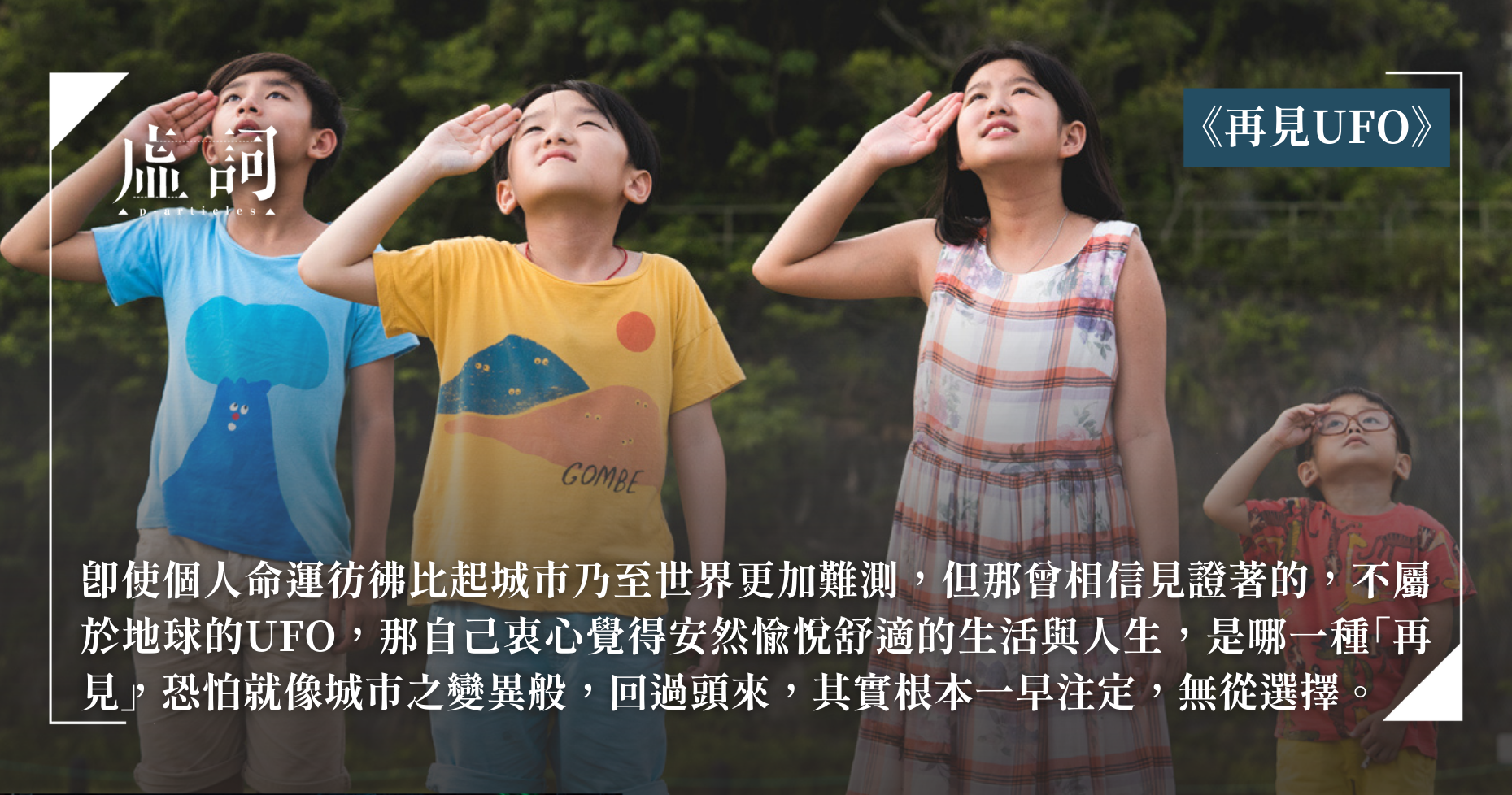 即使個人命運彷彿比起城市乃至世界更加難測,但那曾相信見證著的,不屬於地球的UFO,那自己衷心覺得安然愉悅舒適的生活與人生,是哪一種「再見」,恐怕就像城市之變異般,回過頭來,其實根本一早注定,無從選擇。