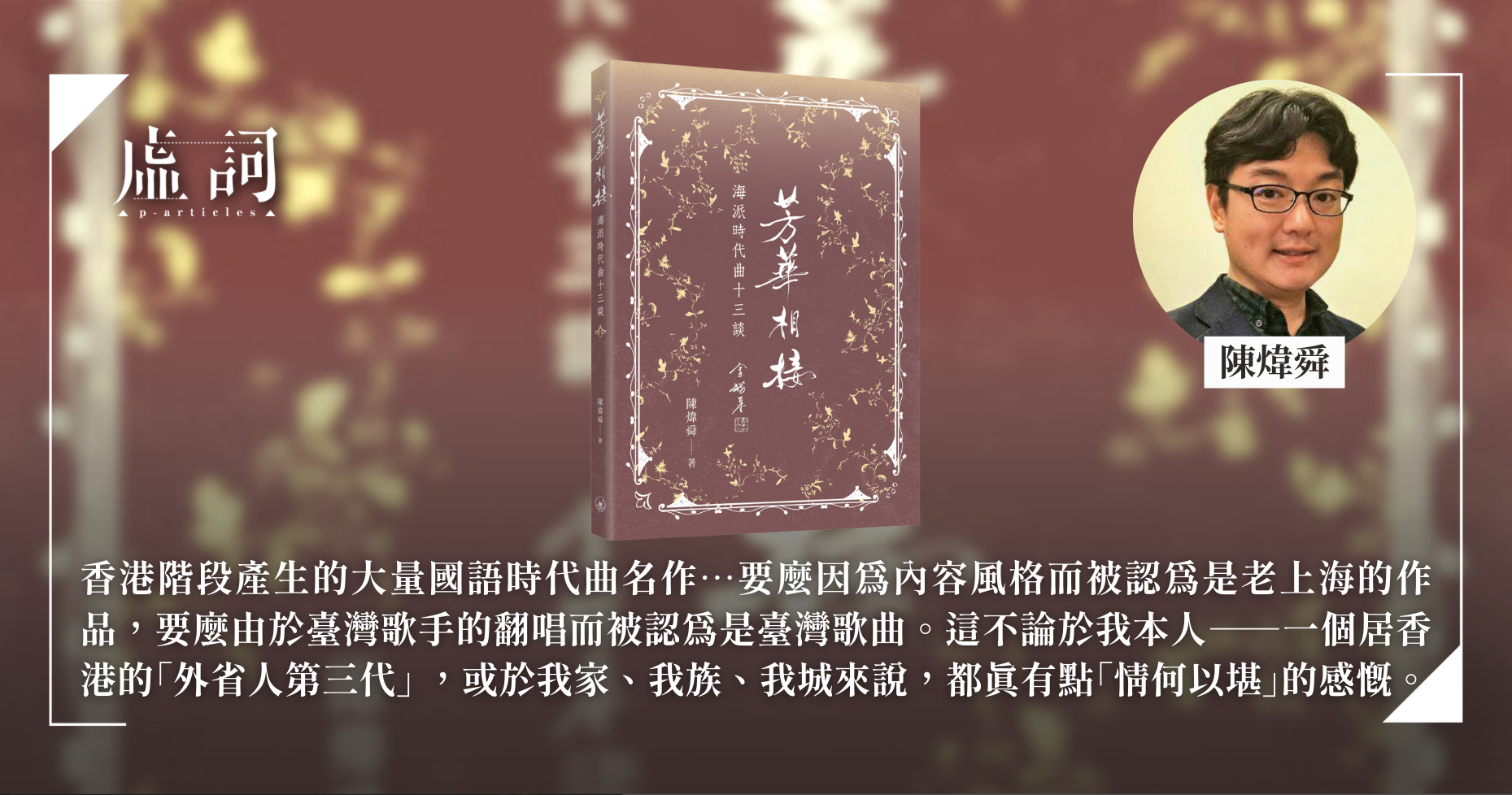 另一巧合是2023年底,珠海學院董就雄教授相邀為「通識課程講座」擔任主講,且半開玩笑云「以時代曲為主題也非常好」。就雄學弟又說,到時在座的會有不少來自內地的研究生,我大可以國語主講,他願意撥冗親自主持。這番話倒促使我把講題定為〈好花盛開有幾時:淺談香港階段的海派時代曲(1950-1970年代)〉。1949年後,香港成為海派時代曲的重鎮,直到1970年代粵語流行曲興起後,時代曲的芳華才告消歇。但令人惋惜的是,粵語文化從此成為海內外華人對香港的單一印象,香港階段產生的大量國語時代曲名作,如〈春風吻上我的臉〉、〈南屏晚鐘〉、〈今宵多珍重〉、〈不了情〉、〈情人的眼淚〉、〈薔薇之戀〉、〈問白雲〉、〈我要你的愛〉、〈一見你就笑〉等,要麼因為內容風格而被認為是老上海的作品,要麼由於臺灣歌手的翻唱而被認為是臺灣歌曲。這不論於我本人――一個身居香港的「外省人第三代」,或於我家、我族、我城來說,都真有點「情何以堪」的感慨。講座定於2024年2月23日,在就雄教授的主持下,觀眾反應良佳,甚至令我約略感覺到一點「宣揚香港文化」的成就感。稍後,我請系上張奕怡同學整理錄音檔,校閱後承蒙《方圓》文學及文化專刊的青睞,刊登於2024年夏季號。這一期《方圓》剛好以小說及電視劇《繁花》為主題,拙文雖屬「亂入」,主編卻說我「談香港階段的海派時代曲,又回到上海―香港的雙城繁華,時代靡靡之美,回過頭來可與本期《繁花》主題對讀」,可謂溫厚之至。因此,這篇講稿會作為附錄,置於本書之末,供讀者諸君參詳。