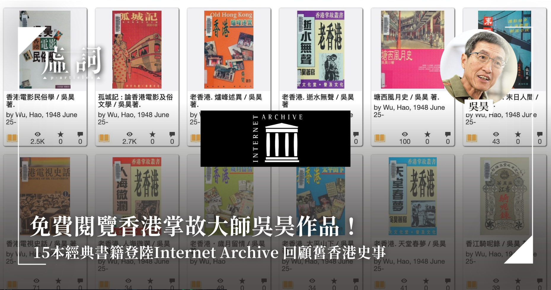 免費閱覽香港掌故大師吳昊作品! 15本經典書籍登陸Internet Archive 回顧舊香港史事