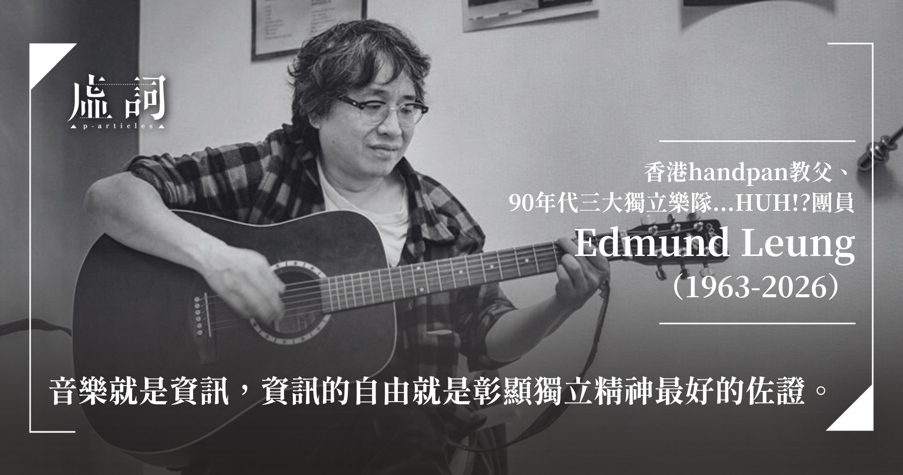 香港音樂媒體工作者袁智聰於今日在社交媒體發文,表示香港傳奇音樂家、90年代三大獨立樂隊...HUH!?團員,有handpan教父之稱的Edmund Leung(梁卓堃)於日前(19日)黃昏時分逝世,享年63歲。