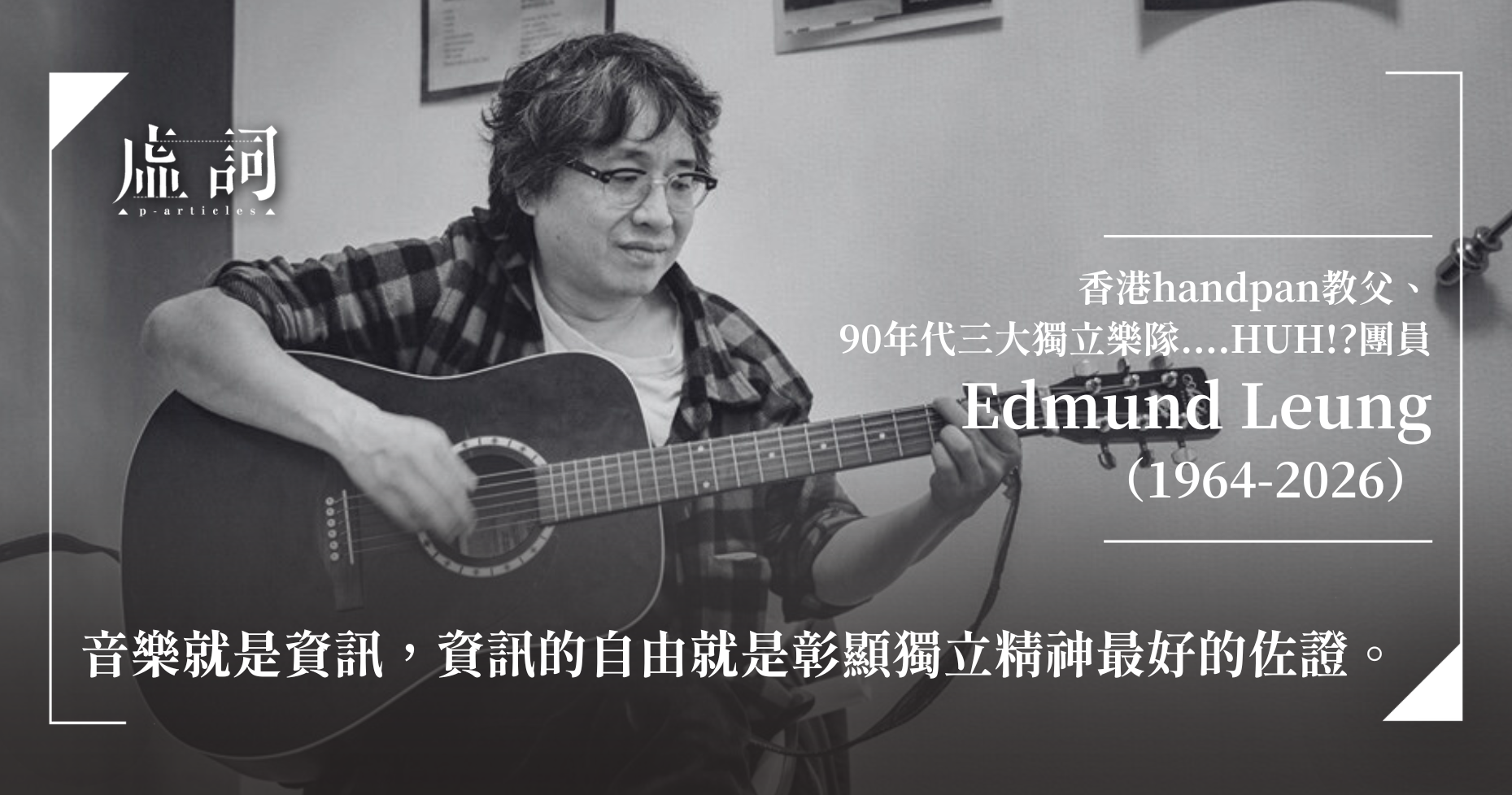 香港音樂媒體工作者袁智聰於今日在社交媒體發文,表示香港傳奇音樂家、90年代三大獨立樂隊...HUH!?團員,有handpan教父之稱的Edmund Leung(梁卓堃)於2月17日凌晨時分逝世,享年61歲。