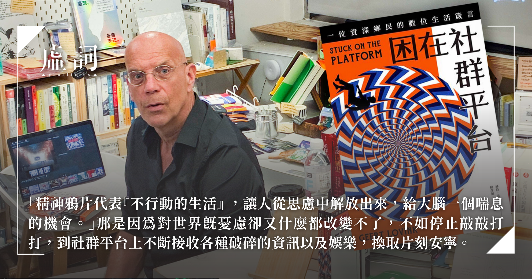 這種「把它放回去」的能力,可能正是我們這個時代所欠缺的。也或許因為如此,所以洛芬克在台灣出版的新書才定名為《困在社群平台》(Stuck on the Platform)。原書於2022年出版,但台灣版不僅重新編排,還另外選入作者在其他地方發表的文章,包含一篇2025年的最新作品。這篇書中的第七章,篇名就叫做〈精神鴉片指南:數位災難時代,該如何應付?〉。