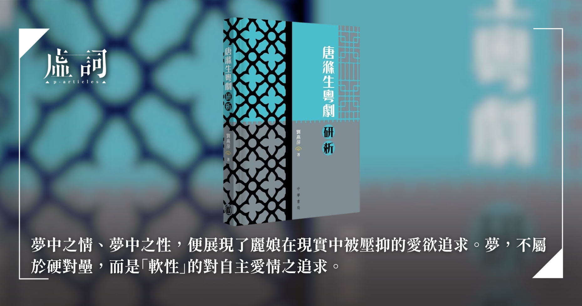 嶺南大學中文系榮譽教授劉燕萍於近月出版《唐滌生粵劇研析》一書。在〈愛情與叛逆〉一文中指出,《牡丹亭驚夢》因主角杜麗娘因現實中深受父親杜寶嚴格禮教壓抑,禁絕異性接觸與情感流露,「因情成夢」使其被壓抑的愛欲在夢中釋放。相較湯顯祖原著,唐滌生改編的出版本將性愛描寫改為含蓄比喻與動作暗示,更為保守,以迎合1950年代粵劇觀眾的期待視野。