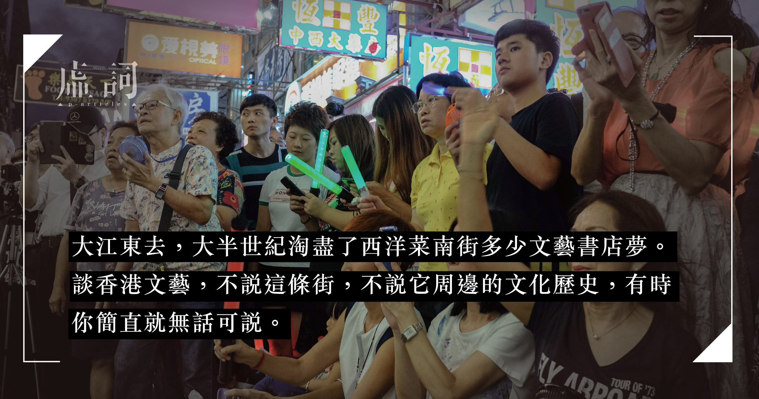 大江東去,大半世紀淘盡了西洋菜南街多少文藝書店夢。談香港文藝,不說這條街,不說它周邊的文化歷史,有時你簡直就無話可說。比如洗衣街近球場轉角位,就有一間專賣台灣詩集的友聯書店。《笠》和《創世紀》詩刊香港就只有這一家;再向前行有廣華街的新亞書局,我家中錢穆、唐君毅及牟宗三的藏書,大部份來自此店。當然還有影響幾代人的《中國學生周報》,其編輯部就設在西洋菜南街盡頭登打士街某屋的樓上。